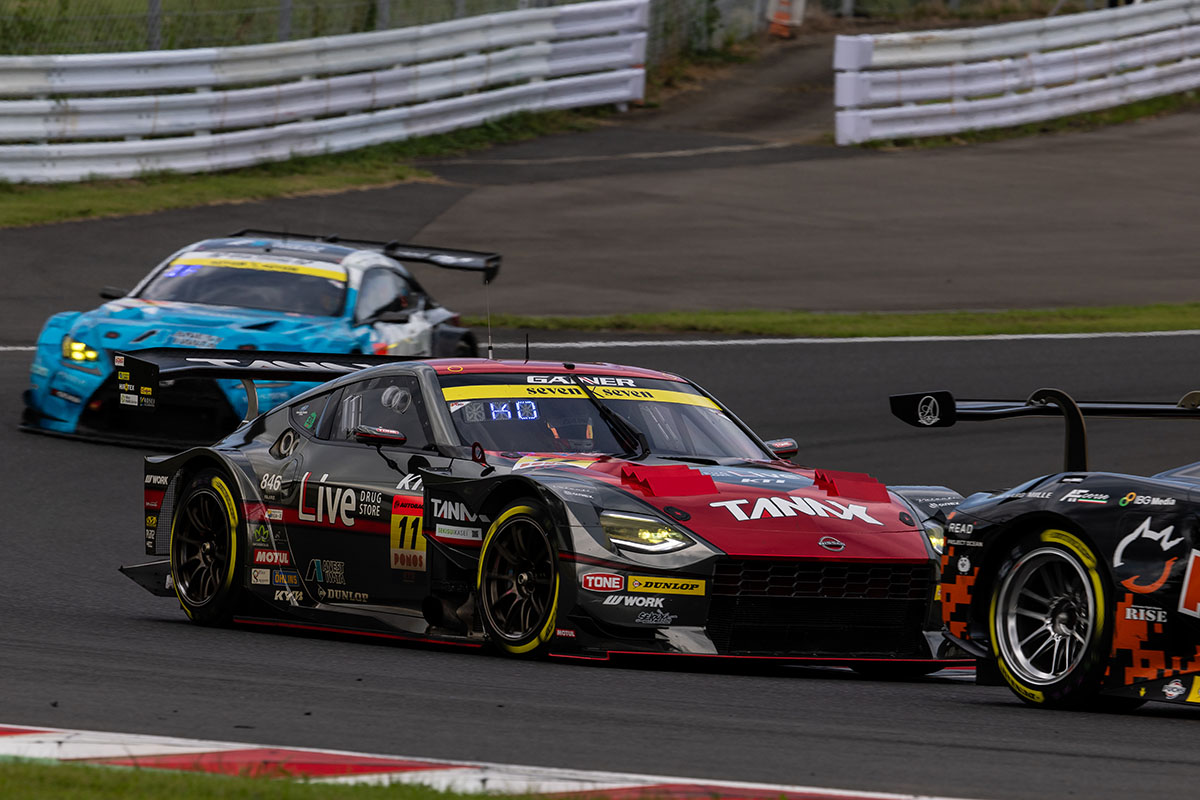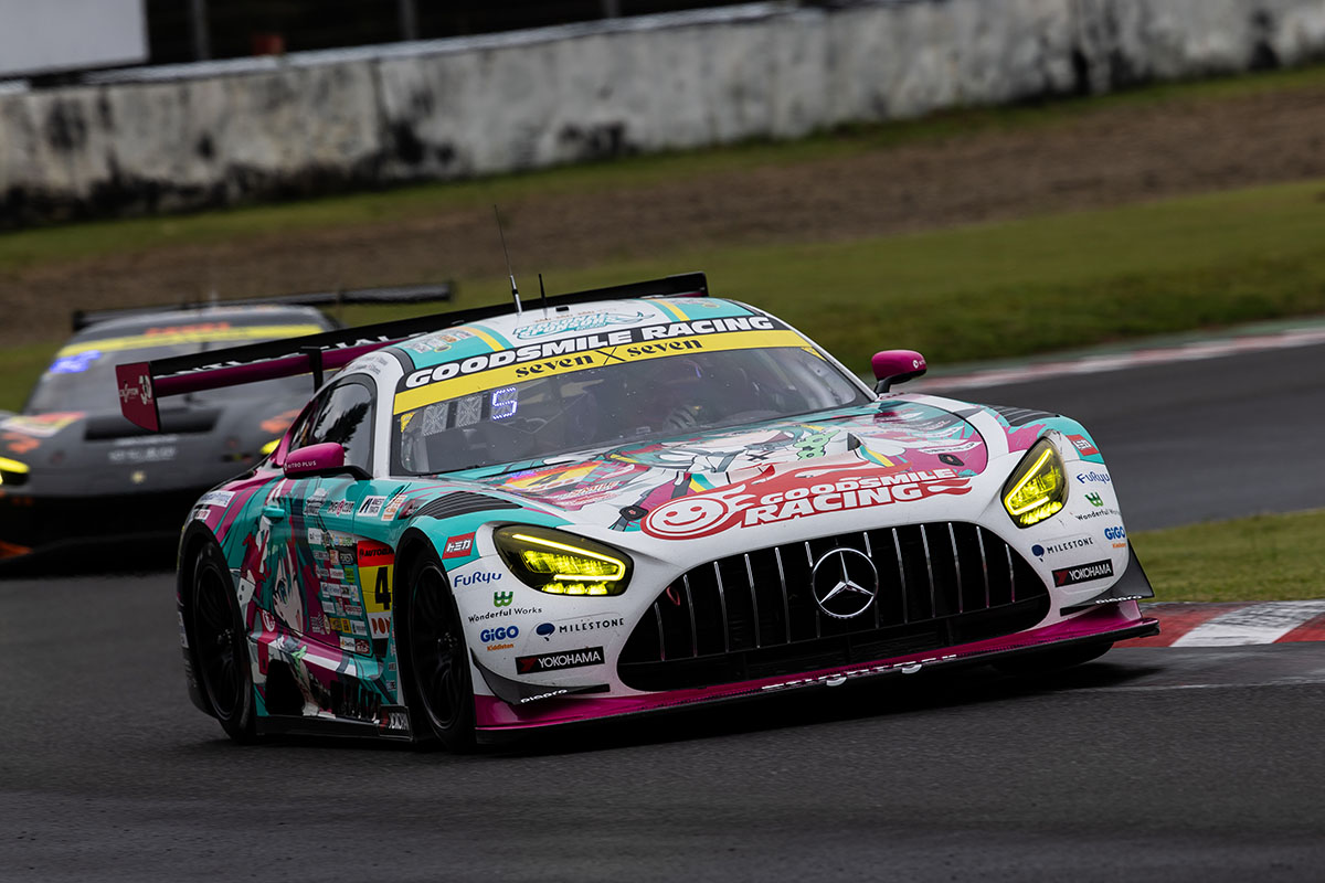 後方では0号車 VENTENY Lamborghini GT3 が苦戦し、4号車 グッドスマイル 初音ミク AMG や56号車 リアライズ日産メカニックチャレンジ GT-R が順位を上げる展開に。序盤にはGT300車両のアクシデントによりフルコースイエロー(FCY)が導入され、タイヤのグリップ低下により60号車が後方から詰め寄られる場面もあった。