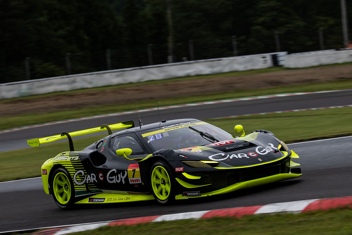 午後の予選は曇り空の下、14時05分にGT300のQ1 Aグループがスタート。タイムアタックが始まると、真っ先に666号車 seven × seven PORSCHE GT3R がターゲットタイムをマーク。そのなかで7号車 CARGUY Ferrari 296 GT3 が圧倒的な速さを見せ、Q2進出を決めた。Q1 B組では、前大会で表彰台を獲得しながらもレース後の車検で失格となった60号車 Syntium LMcorsa LC500 GT がトップ通過を果たした。